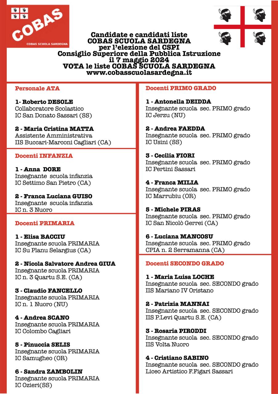 ELEZIONI CSPI - Liste COBAS Scuola Sardegna