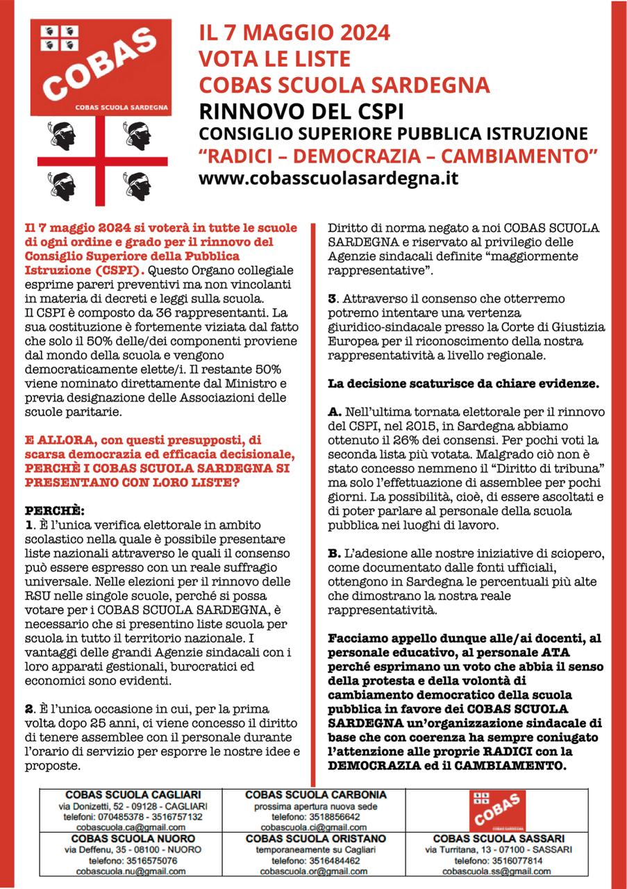 ELEZIONI CSPI - Comunicato COBAS SCUOLA SARDEGNA